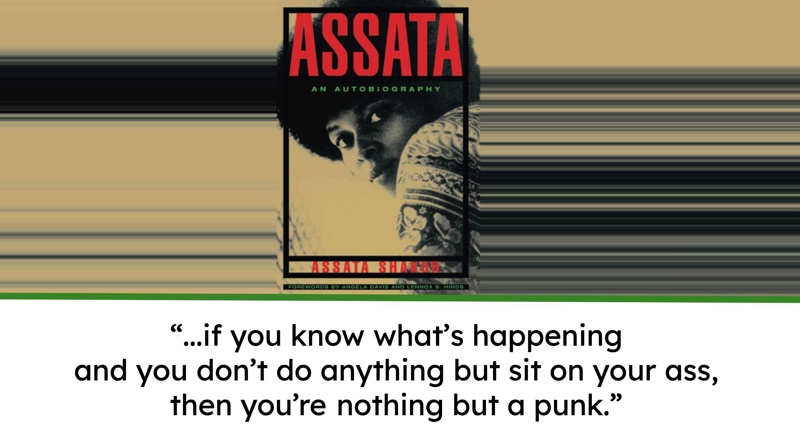 - Shakur, Assata. Assata: An Autobiography. Lawrence Hill Books, 1987, p. 50. ↩︎
